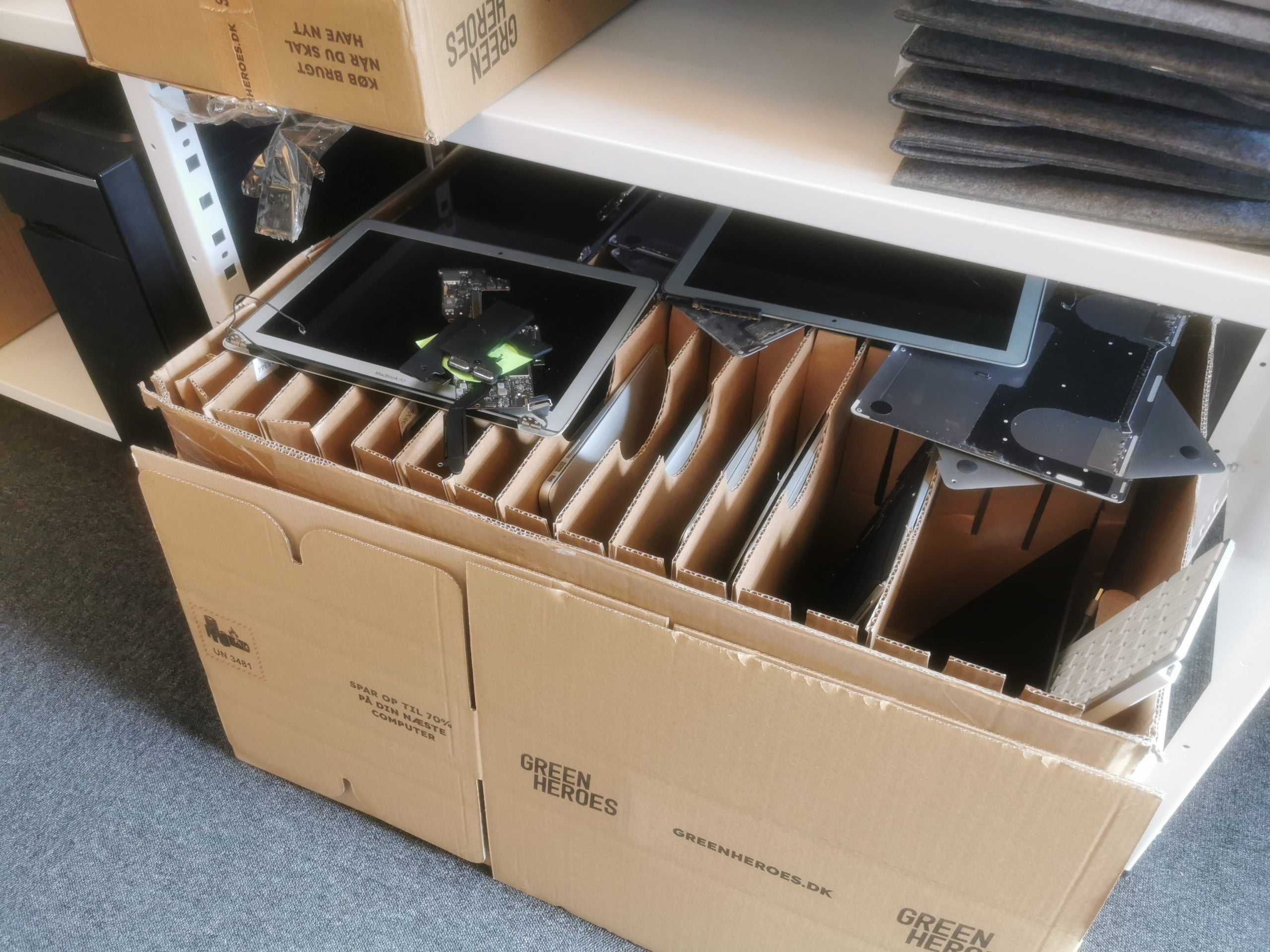 Defekte computere bruges til reservedele. Reservedelslageret består mest af defekte Apple MacBooks, der også er den type af computere Green Heroes sælger flest af.